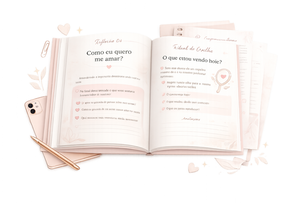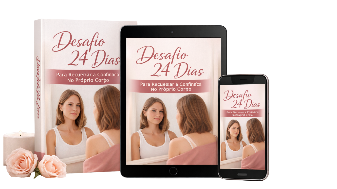 O Desafio 24 Dias é um guia leve e prático para reconstruir a relação com o próprio corpo — sem dieta, sem treino e sem pressão estética.